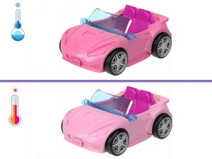 Wkrocz do cukierkowego świata BarbieLand, tym razem w wersji mini! Stylowy kabriolet oczywiście w różowym kolorze będzie świetnym uzupełnieniem kolekcji z serii Mini BarbieLand ale sprawdzi się również jako samodzielna zabawka. Będzie świetnym upominkiem dla każdej małej fanki magicznego świata Barbie! Co zawiera zestaw?W zestawie znajdziemy:stylowe różowe autkowysepkę ze znakiem drogowym i skrzynką pocztowąmini lalkę BarbieUwaga: odcienie autek mogą się różnić od prezentowanych na zdjęciach. Zalety produktu:Cabrio bez problemu pomieści 2 mini laleczki z tej serii. Dodatkowo autko po zanurzeniu w lodowatej wodzie zmieni kolor! Wolisz jego pierwotny wygląd? Nie ma problemu, wystarczy zanurzyć go w ciepłej wodzie, by powrócił do poprzedniej wersji. Zmiana działa wielokrotnie, więc zabawa może nie mieć końca. Jakim autkiem dziś pojedzie Twoja ulubiona Barbie?Dodatkowe akcesoria uzupełniają zestaw i sprawiają, że zabawa jest ciekawsza. Zebranie całej kolekcji pozwala na stworzenie prawdziwego miasteczka Barbie, w którym będą przeżywać najbardziej szalone przygody!Mieszkanki BarbieLandu są odważne, piękne i zawsze świetnie ubrane. Mini lalka w modnym ubraniu jest zginana w pasie, dzięki czemu łatwo umieścić ją w samochodzie. To gdzie dziś jedziemy?Wymiary:wysokość mini lalki ok. 3,8 cmdługość autka ok. 4,8 cmDlaczego warto?Kompaktowy rozmiar sprawia, że zabawka sprawdzi się nawet w niewielkim dziecięcym pokoju. Łatwo też zabrać ją w podróż, czy wizytę u lekarza. Będzie również świetnym pomysłem na drobny upominek. Zestaw jest kompatybilny z innymi modelami z serii Mini BarbieLand (sprzedawane osobno)- zbierz całą kolekcję i stwórz tętniące życiem miasteczko!