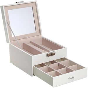 Szkatułka pudełko organizer na biżuterię pierścionki z szufladą - kremowy