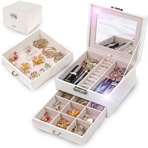 Kod producenta: 1029772 Elegancka i praktyczna szkatułka na biżuterię marki Retoo to idealne rozwiązanie do przechowywania kolczyków, pierścionków, zegarków i innych akcesoriów. Wykonana z wysokiej jakości skóry ekologicznej (PU), posiada uchylne lusterko, wysuwaną szufladę oraz mechanizm zamykany na kluczyk , co zapewnia bezpieczeństwo przechowywanych przedmiotów. Świetnie sprawdzi się zarówno na toaletce, jak i w podróży. Jej nowoczesny wygląd sprawia, że będzie doskonałym prezentem dla każdej kobiety. Cechy produktu: - Stylowy, kremowy kuferek z ekoskóry - Wbudowane lusterko uchylne z ukrytym schowkiem - Wysuwana, wyjmowana szuflada z 9 przegródkami - Górne przegródki idealne na kolczyki i drobne akcesoria - Dolne przegródki na zegarki, bransoletki i pierścionki - Zamykana na kluczyk - zabezpieczenie przed dostępem osób trzecich - Antypoślizgowe stopki chroniące powierzchnię mebli - Praktyczna i pojemna organizacja przestrzeni - Idealna na prezent - elegancka i funkcjonalna Dane techniczne: - Marka: Retoo - Model: O229 - Kolor: Kremowy - Materiał: Skóra ekologiczna PU - Waga: 700 g (z opakowaniem: 1 kg) - Ilość przegródek: 12 - Wymiary zewnętrzne: 16 x 16 x 11 cm - Wymiary po otwarciu: 31 x 16 x 25 cm - Wymiary lusterka: 15 x 15 cm - Certyfikaty: CE Zawartość zestawu: - Kuferek na biżuterię Retoo - Kluczyk do zamykania - Antypoślizgowe nóżki - Oryginalne opakowanie