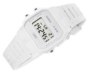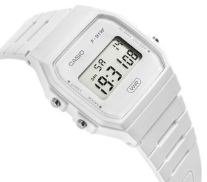 Zegarek CASIO Unisex F-91WB-7AVDFKlasyka, która nigdy nie wychodzi z mody – Casio F-91WB-7AVDF to ponadczasowy zegarek cyfrowy dla kobiet i mężczyzn, łączący prostotę, funkcjonalność i niepowtarzalny styl retro. Smukła, lekka koperta w matowej czerni nadaje mu uniwersalny charakter, który doskonale pasuje zarówno do codziennych stylizacji, jak i miejskiego streetwearu. Wytrzymała konstrukcja, wodoszczelność na poziomie 30M oraz długi czas pracy baterii sprawiają, że to model, na którym możesz polegać każdego dnia. Wyposażony w precyzyjny stoper, alarm i automatyczny kalendarz, F-91WB-7AVDF to symbol niezawodności i prostoty – zegarek, który stał się ikoną stylu i funkcjonalności w najlepszym wydaniu marki Casio. Opis produktu:Marka: CASIOSymbol: F-91WB-7AVDFMechanizm: KwarcowyTarcza: Cyfrowa LCDPodświetlenie: LED zielonySzkiełko: HesalitowePasek: Tworzywo sztuczneWodoszczelność: WR 10 MAntyalergiczny: Tak - nie zawiera niklu Wymiary w mm:Koperta: 35/38Tarcza: 20/10Grubość: 8,5Pasek szerokość: 21/15Obwód: 130 - 210 Kolorystyka:Koperta: białaTarcza: biało szaraWskazówki cyfrowe: czarnePasek: biały MECHANIZM KWARCOWY - dokładność i niezawodnośćJest to niezawodny mechanizm stosowany w klasycznych zegarkach cyfrowych Casio, który łączy funkcjonalność z długą żywotnością baterii. Wymiana baterii to jedyna regularna czynność, którą należy wykonywać podczas użytkowania kwarcowego zegarka. To idealny wybór dla aktywnych osób, które cenią sobie komfort i prostotę w działaniu zegarka. SZKIEŁKO HESALITOWE – TRADYCJA I PONADCZASOWY STYL.Szkiełko hesalitowe to klasyczny wybór, który dodaje zegarkowi wyjątkowego charakteru – jego ciepły, lekko zaokrąglony wygląd nadaje tarczy szlachetnej głębi, a jednocześnie jest niezwykle praktyczne, bo ewentualne drobne zarysowania można łatwo wypolerować, przywracając mu świeży wygląd. To rozwiązanie cenione przez kolekcjonerów i pasjonatów zegarków, którzy doceniają tradycję, autentyczność i ponadczasowy styl.WODOSZCZELNOŚĆ WATER RESISTZegarek jest wodoodporny na poziomie WR, co oznacza ochronę przed zachlapaniami, ale nie jest przeznaczony do pływania. Taki zegarek jest wystarczająco odporny na wodę, aby sprostać wielu typowym sytuacjom, które mogą się zdarzyć na co dzień: np. nagłe opady deszczu czy kontakt z wodą podczas mycia rąk. FUNKCJONALNOŚĆ TWOJEGO ZEGARKAZegarek Casio F-91WB-1ADF oferuje zestaw klasycznych, praktycznych funkcji, które sprawiły, że ten model stał się ikoną prostoty i niezawodności: precyzyjny czasomierz cyfrowy z 24-godzinnym formatem, stoper 1/100 sekundy z możliwością pomiaru czasu pośredniego, alarm dzienny z funkcją sygnału pełnej godziny, automatyczny kalendarz uwzględniający dni miesiąca, podświetlenie LED (Micro Light) do odczytu w ciemności, żywotność baterii do 7 lat, wodoszczelność typu Water Resistant chroniąca przed zachlapaniami, tryb 12/24 h, kompaktowa i lekka konstrukcja z tworzywa sztucznego zapewniająca komfort noszenia, a także klasyczny design retro z wyraźnym wyświetlaczem LCD i charakterystycznym prostokątnym kształtem koperty, dzięki czemu F-91WB-1ADF łączy funkcjonalność, trwałość i ponadczasowy styl w jednym, kultowym zegarku Casio. MOCNY I TRWAŁY PASEK Z TWORZYWAPasek z tworzywa to doskonałe rozwiązanie dla osób, które cenią sobie wygodę i funkcjonalność w codziennym użytkowaniu zegarka. Mocny a zarazem miękki, elastyczny materiał idealnie dopasowuje się do nadgarstka, zapewniając komfort noszenia przez cały dzień – niezależnie od sytuacji. Pasek jest lekki, przyjemny w dotyku i odporny na działanie wody, potu czy zmiennych warunków pogodowych, dzięki czemu pasek zachowuje swój wygląd i właściwości przez długi czas. To idealny wybór dla osób aktywnych, które potrzebują praktycznego, a jednocześnie stylowego dodatku. Pasek silikonowy łączy w sobie trwałość, nowoczesny wygląd i maksymalną wygodę użytkowania. ZESTAW ZAWIERA:Oryginalny zegarek marki CASIOFirmowe pudełko CASIO Kartę gwarancyjną z instrukcją obsługi ZEGAREK CASIO - CZAS W NAJLEPSZYM WYDANIUDzięki wyjątkowej dbałości o detale i rygorystycznym testom wytrzymałościowym, Casio oferuje czasomierze, które zyskały miano "zegarków na pokolenia". To marka, której zaufały miliony ludzi na całym świecie, od globtroterów, przez sportowców, aż po osoby poszukujące codziennej elegancji. Casio to nie tylko zegarek – to trwałość, innowacja i historia wpisana w każdą sekundę.