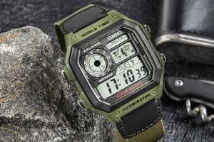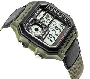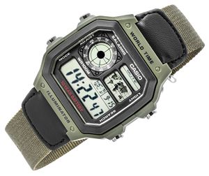 Zegarek Męski CASIO AE-1200WHB-3BVDFCasio AE-1200WHB-3BVDF to męski zegarek cyfrowy z kultowej serii Casio Collection, który w wyjątkowy sposób łączy wojskowy styl i retrodesign z nowoczesną technologią. Solidna koperta z tworzywa sztucznego, szkiełko haselitowe oraz wytrzymały pasek parciany o tekstylnej fakturze tworzą lekką, a zarazem niezwykle wygodną konstrukcję, idealną na co dzień i w podróży. Ciemnozielona kolorystyka z czarnymi akcentami i prostokątna tarcza LCD z mapą świata nadają zegarkowi charakterystyczny, przygodowy wygląd inspirowany stylem vintage. Model wyposażono w funkcję czasu światowego (World Time), pięć alarmów dziennych, stoper 1/100 sekundy, timer odliczania, automatyczny kalendarz oraz podświetlenie LED z regulacją czasu świecenia. Zasilany baterią o żywotności do 10 lat, oferuje również wodoszczelność 100 metrów, dzięki czemu doskonale sprawdzi się zarówno w miejskiej dżungli, jak i w terenie. Casio AE-1200WHB-3BVDF to zegarek dla mężczyzn, którzy cenią niezawodność, funkcjonalność i ponadczasowy design z nutą przygody. Opis produktu:Marka: CASIOSymbol: AE-1200WHB-3BVDFMechanizm: KwarcowyTarcza: Cyfrowa LCDSzkiełko: HesalitowePasek: ParcianyWodoszczelność: WR 100 MAntyalergiczny: Tak - nie zawiera niklu Wymiary w mm:Koperta: 42/44Tarcza: 30/27Grubość: 12Pasek szerokość: 24/20Obwód: 150 - 220 Kolorystyka:Koperta: oliwkowy kakiTarcza: czarno szaraWskazówki: czarneSekundnik: czarnyPasek: czarno oliwkowo kaki MECHANIZM KWARCOWY - dokładność i niezawodnośćJest to niezawodny mechanizm stosowany w klasycznych zegarkach cyfrowych Casio, który łączy funkcjonalność z długą żywotnością baterii. Wymiana baterii to jedyna regularna czynność, którą należy wykonywać podczas użytkowania kwarcowego zegarka. To idealny wybór dla aktywnych osób, które cenią sobie komfort i prostotę w działaniu zegarka. SZKIEŁKO HESALITOWE – TRADYCJA I PONADCZASOWY STYL.”Szkiełko hesalitowe to klasyczny wybór, który dodaje zegarkowi wyjątkowego charakteru – jego ciepły, lekko zaokrąglony wygląd nadaje tarczy szlachetnej głębi, a jednocześnie jest niezwykle praktyczne, bo ewentualne drobne zarysowania można łatwo wypolerować, przywracając mu świeży wygląd. To rozwiązanie cenione przez kolekcjonerów i pasjonatów zegarków, którzy doceniają tradycję, autentyczność i ponadczasowy styl.WODOODPORNOŚĆ 10 ATM / 100M - WIĘKSZA ODPORNOŚĆ NA WODĘCzasomierz jest odporny na deszcz, wilgoć, zachlapania podczas mycia rąk czy krótkotrwały kontakt z wodą a nawet kąpiel bez zanurzania. Dzięki szczelnej kopercie oraz mineralnemu szkłu mechanizm pozostaje bezpieczny, a tarcza zachowuje elegancki wygląd przez długi czas. Warto jednak pamiętać, że poziom 10 ATM nie jest przeznaczony do skakania do wody czy nurkowania. To idealny kompromis między stylem, funkcjonalnością i codzienną wygodą. FUNKCJONALNOŚĆ TWOJEGO ZEGARKACasio to wielofunkcyjny zegarek cyfrowy z wyświetlaczem LCD, zaprojektowany z myślą o osobach ceniących niezawodność, funkcjonalność i styl retro. Wyposażony jest w funkcję czasu światowego (World Time) z mapą świata i możliwością szybkiego przełączania między czterema zapisanymi strefami czasowymi, pięć niezależnych alarmów dziennych, sygnał pełnej godziny, stoper 1/100 sekundy działający do 24 godzin z funkcją międzyczasu (split time), timer odliczający od 1 sekundy do 24 godzin, automatyczny kalendarz uwzględniający lata przestępne, a także format wyświetlania 12/24 godziny. Dodatkowo posiada funkcję wyciszenia dźwięków przycisków, możliwość ustawienia czasu letniego (DST), podświetlenie LED z regulowanym czasem świecenia (1,5 lub 3 sekundy), tryb podwójnego czasu (Dual Time) oraz wskaźnik AM/PM. Zegarek jest zasilany baterią o żywotności do 10 lat, a jego wodoszczelność na poziomie 100 metrów (10 BAR) umożliwia bezpieczne użytkowanie podczas kontaktu z wodą i codziennych aktywności. MOCNY I TRWAŁY PASEK PARCIANYPasek parciany to doskonałe rozwiązanie dla osób, które cenią sobie wygodę i funkcjonalność w codziennym użytkowaniu zegarka. Mocny a zarazem miękki, elastyczny materiał idealnie dopasowuje się do nadgarstka, zapewniając komfort noszenia przez cały dzień – niezależnie od sytuacji. Pasek jest lekki, przyjemny w dotyku i mocny, dzięki czemu pasek zachowuje swój wygląd i właściwości przez długi czas. To idealny wybór dla osób aktywnych, które potrzebują praktycznego, a jednocześnie stylowego dodatku. Pasek parciany łączy w sobie trwałość, nowoczesny wygląd i maksymalną wygodę użytkowania. ZESTAW ZAWIERA:Oryginalny zegarek marki CASIOFirmowe pudełko CASIO Kartę gwarancyjną z instrukcją obsługi ZEGAREK CASIO - CZAS W NAJLEPSZYM WYDANIUDzięki wyjątkowej dbałości o detale i rygorystycznym testom wytrzymałościowym, Casio oferuje czasomierze, które zyskały miano "zegarków na pokolenia". To marka, której zaufały miliony ludzi na całym świecie, od globtroterów, przez sportowców, aż po osoby poszukujące codziennej elegancji. Casio to nie tylko zegarek – to trwałość, innowacja i historia wpisana w każdą sekundę.