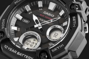 Zegarek Męski CASIO AEQ-120W-1AVDF Połącz funkcjonalność z gotowością na każdą przygodę dzięki zegarkowi CASIO AEQ-120W o wyrazistej, solidnej formie i powiększonej kopercie. Duży bezel i wypukła tarcza zapewniają świetną czytelność i podkreślają męski, zdecydowany charakter zegarka. Wodoszczelność do 100 metrów oraz bateria działająca nawet 10 lat to gwarancja niezawodności. Dodatkowe funkcje, takie jak alarmx3, timer i czas światowy, sprawiają, że masz kontrolę nad swoim dniem – bez względu na to, gdzie jesteś. TELEMEMO (30 wpisów) to praktyczne rozwiązanie, które pozwala na przechowywanie ważnych kontaktów bez potrzeby korzystania z telefonu, co jest szczególnie przydatne w sytuacjach awaryjnych lub podczas aktywności na świeżym powietrzu. Dodatkowo, funkcja ta oferuje ekran informujący o dostępnej pamięci oraz automatyczne sortowanie zapisanych danych. Opis produktu:Marka: CASIOSymbol: AEQ-120W-1AVDFMechanizm: Kwarcowy zasilany baterią, ze wskazówką godzinową i minutowąTarcza: Analogowo - Cyfrowa 3DKoperta: Materiał żywiczny ResinSzkiełko: Żywiczne szkiełko Resin GlassPasek: Materiał żywiczny ResinStandardowe funkcje (cyfrowa tarcza): godzina, minuta, sekunda, AM/PM, miesiąc, data, dzień tygodniaDodatkowe funkcje: Czas światowy w 30 miastach (29 stref czasowych) / Format 12/24 / Stoper 1/100 sekundy / Sygnał godzinowy / automatyczny kalendarz / Minutnik z odliczaniem/ / 3 alarmy (1 z funkcją drzemki) / Sygnał pełnej godziny / TELEMEMO (pamięć 30 wpisów)Podświetlenie: powłoka świetlna Neobrite na wskazówkachWodoszczelność: 10 BAR - odporny na kontakt z wodą / pływanieAntyalergiczny: Tak - nie zawiera nikluBateria: 10-letnia żywotność baterii (10 Year Battery) Wymiary w mm:Koperta: 52 mm x 48 mmGrubość: 16,2 mmPasek szerokość: 30/21 mmObwód: 145 mm - 215 mm Kolorystyka:Koperta/Pasek: czarnyTarcza 3D: czarna + srebrne elementyWskazówki: srebrne + powłoka Neobrite MECHANIZM KWARCOWY - dokładność i niezawodnośćJest to niezawodny mechanizm stosowany w klasycznych zegarkach cyfrowych Casio, który łączy funkcjonalność z długą żywotnością baterii. Wymiana baterii to jedyna regularna czynność, którą należy wykonywać podczas użytkowania kwarcowego zegarka. To idealny wybór dla aktywnych osób, które cenią sobie komfort i prostotę w działaniu zegarka. SZKIEŁKO RESINOWE - OPTYMALNA OCHRONA ORAZ CZYTELNA TARCZAWykonane z wyjątkowo lekkiego i wytrzymałego materiały żywicznego. Dzięki elastyczności żywicy, materiał ten lepiej radzi sobie z wstrząsami i upadkami w porównaniu do tradycyjnego szkła. Dodatkowo zapewnia doskonałą przejrzystość oraz jasność, co znacząco ułatwia szybki i wyraźny odczyt godziny w różnych warunkach oświetleniowych. PRZESTRZENNA TARCZA 3D + WYPUKŁE SZKIEŁKOCyfrowe wyświetlacze zostały osadzone głęboko w strukturze tarczy, co w połączeniu z warstwową konstrukcją tworzy dynamiczny, techniczny efekt. Całość dopełnia lekko wypukłe szkiełko, które nie tylko dodaje głębi kompozycji, ale również podkreśla solidność i styl zegarka. WODOODPORNOŚĆ 10 BAR - NIEZAWODNOŚĆ W EKSTREMALNYCH WARUNKACHZegarek z łatwością radzi sobie z przypadkowymi zachlapaniami, deszczem, a nawet kontaktami z wodą podczas aktywności, takich jak pływanie czy rekreacyjne sporty wodne. Solidna konstrukcja zapewnia trwałość w miejskiej dżungli i podczas outdoorowych przygód. PRZYDATNE FUNKCJECzas światowy w 30 miastach pozwala łatwo odnaleźć się w różnych strefach czasowych – niezależnie od tego, gdzie jesteś lub dokąd zmierzasz. Stoper z dokładnością do 1/100 sekundy i funkcja timera sprawdzą się zarówno podczas intensywnego treningu, jak i w zabieganym dniu. Sygnał pełnej godziny przypomina o upływającym czasie, a w pełni automatyczny kalendarz zadba o aktualną datę aż do 2099 roku – bez Twojej ingerencji. TELEMEMO 30 – TWÓJ CYFROWY NOTATNIKZ funkcją Telememo 30 masz swoje kontakty zawsze tam, gdzie trzeba – na nadgarstku. Pojemność do 30 zestawów danych, każdy z 8-znakową nazwą i 16-cyfrowym numerem telefonu, sprawia, że najważniejsze informacje masz pod ręką, nawet gdy telefon zawiedzie lub jesteś poza zasięgiem. Dodatkowo: ekran z ilością dostępnej pamięci, automatyczne sortowanie danych. WIELOFUNKCYJNY ALARM Z funkcją drzemki Trzy niezależne alarmy dzienne, w tym jeden z funkcją drzemki, pomagają utrzymać rytm dnia – przypominając o ważnych zadaniach, treningach czy spotkaniach. Funkcja drzemki daje Ci kilka minut więcej, gdy naprawdę ich potrzebujesz – idealna na poranki i krótkie resetujące przerwy w ciągu dnia. PASEK RESINOWY (Materiał żywiczny)Bardzo lekki, zapewniając komfort w codziennym użytkowaniu, zwłaszcza w przypadku aktywności fizycznej. Materiał żywiczny jest odporny na uszkodzenia mechaniczne, takie jak pęknięcia czy złamania, co czyni go idealnym wyborem do zegarków przeznaczonych do intensywnego użytkowania. Resin jest odporny na wilgoć, działanie wody, a także na zmiany temperatury, co sprawia, że paski te doskonale sprawdzają się w trudnych warunkach. Paski resinowe są łatwe do czyszczenia - wystarczy przetrzeć je wilgotną ściereczką, aby usunąć zabrudzenia. ZESTAW ZAWIERA:Oryginalny zegarek marki CASIOFirmowe pudełko CASIO Kartę gwarancyjną z instrukcją obsługi ZEGAREK CASIO - CZAS W NAJLEPSZYM WYDANIUDzięki wyjątkowej dbałości o detale i rygorystycznym testom wytrzymałościowym, Casio oferuje czasomierze, które zyskały miano "zegarków na pokolenia". To marka, której zaufały miliony ludzi na całym świecie, od globtroterów, przez sportowców, aż po osoby poszukujące codziennej elegancji. Casio to nie tylko zegarek – to trwałość, innowacja i historia wpisana w każdą sekundę.